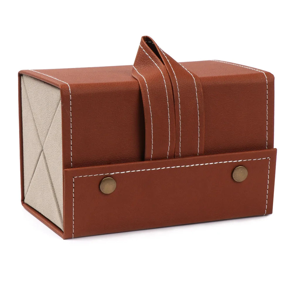 The Portable Glasses Organizer is a PU leather case that can store 2, 3, 4, 5, or 6 pairs of sunglasses. Its durable design and lined suede interior protect glasses and accessories from scratches, dust, and damage. The folding design closes securely with a button and each compartment has Magic Tape to keep items in place. This versatile case can be used for storage or as a travel companion, fitting easily into suitcases, wallets, handbags, and backpacks while still displaying your sunglasses in a stylish way.